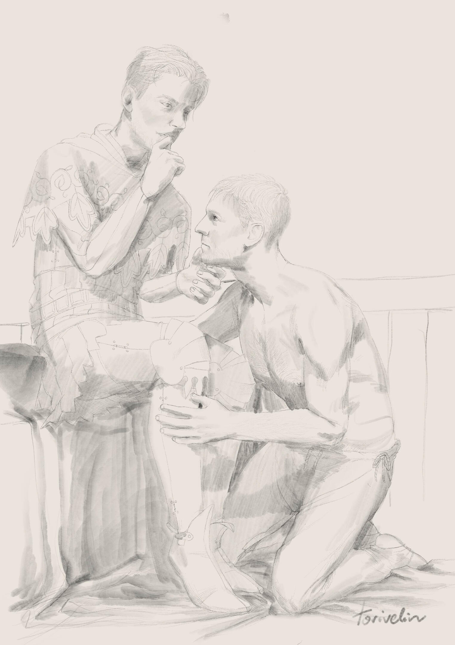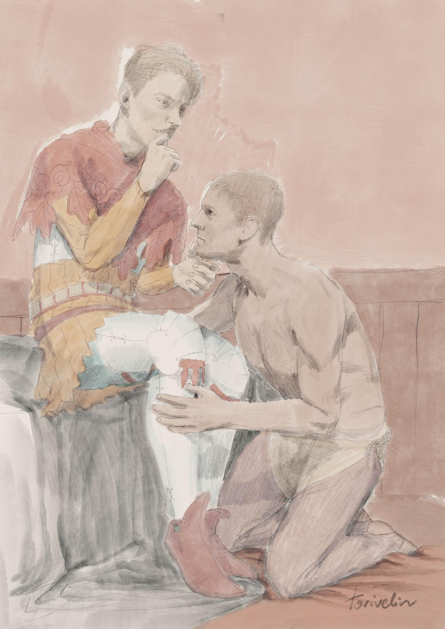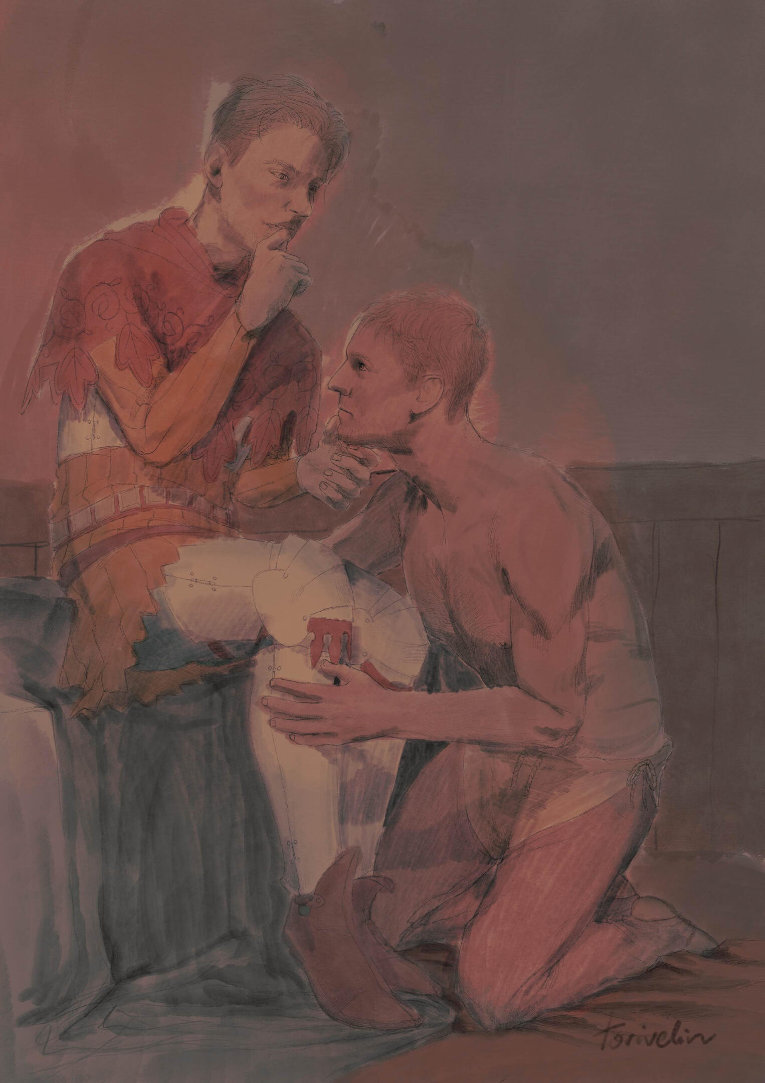60€ - fully rendered artwork with two characters and a background